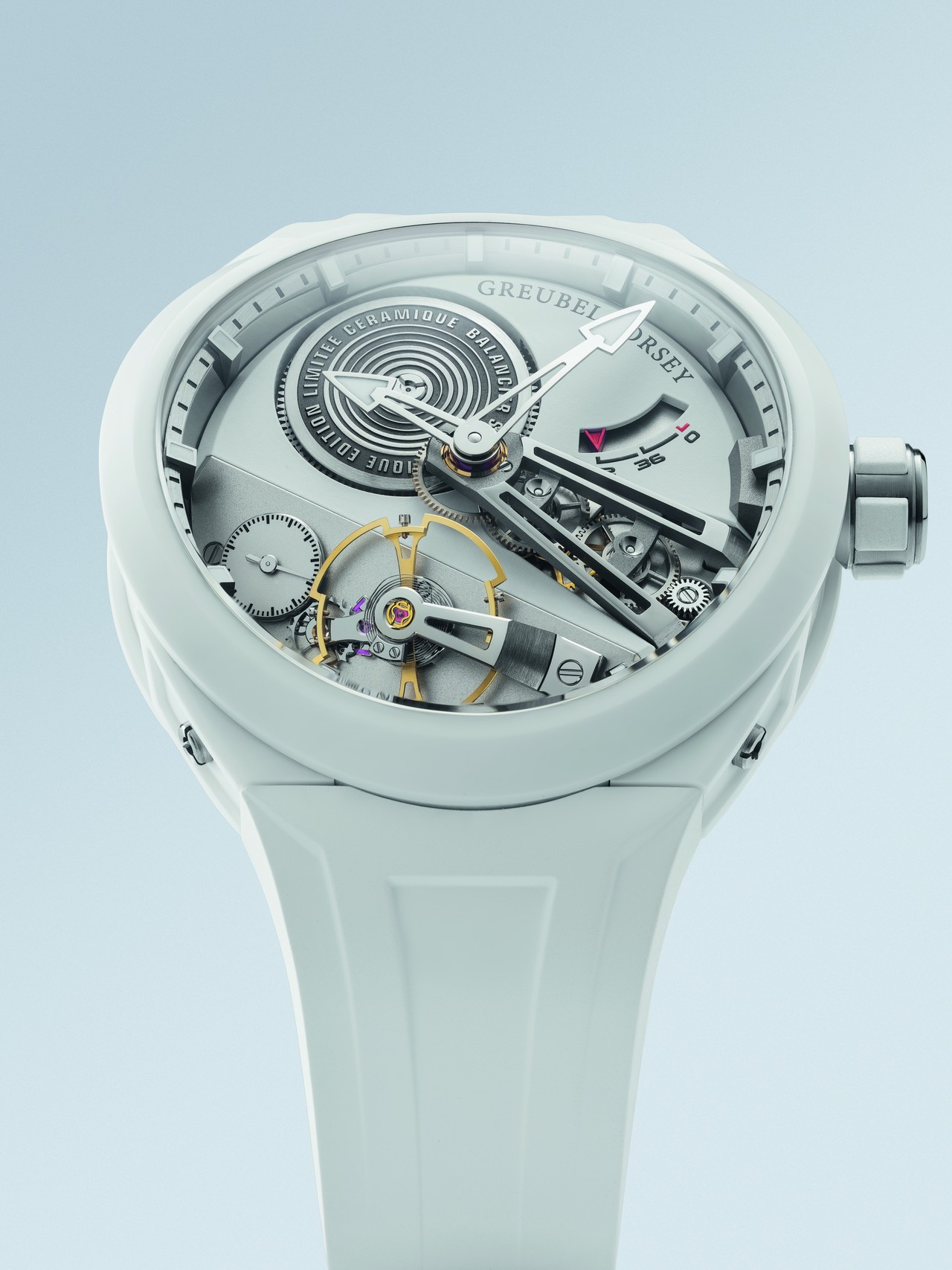 A két új változat eltérő vizuális megközelítéssel rendelkezik. A fekete kerámia tok és a szintén sötét szerkezeti elemek erős kontrasztot alkotnak a vörösarany lünettával és hátlappal. A fehér kerámia változat ezzel szemben inkább monokróm. A világos tok a fény és árnyék játékán keresztül emeli ki a szerkezet részleteit, így a konstrukció grafikus, „technikai” karaktere kerül előtérbe. Mindkét modell 41,5 milliméter átmérőjű, és az erősen domború üveg miatt viszonylag magas is (14,8 mm). Azt már csak mellesleg jegyezzük meg, hogy kerámiából pont a fenti két színt lehet a legkönnyebben és leggazdaságosabban előállítani.